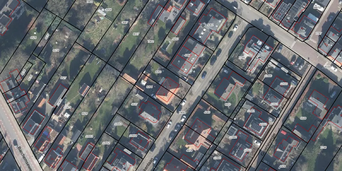 Gebruik de zoekbalk of klik op een perceel voor informatie over de adressen binnen dit perceel.