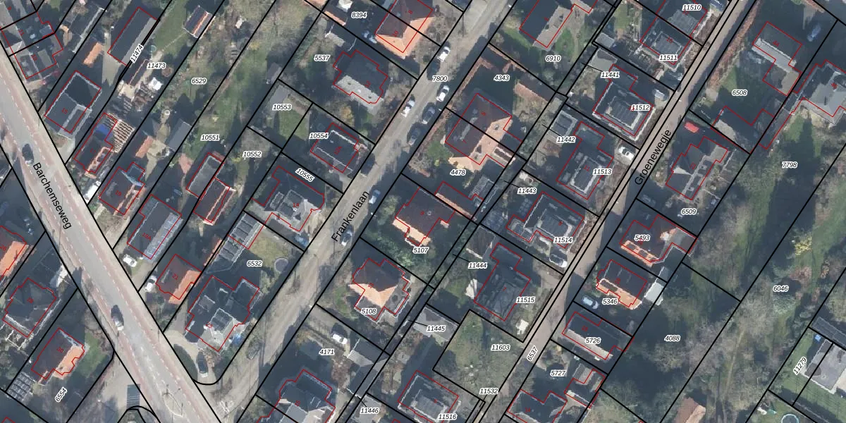 Het perceel waarop Frankenlaan 9 staat heeft een oppervlakte van 345 m². Dit is een groot perceel. De perceeloppervlakte wordt geregistreerd door het Kadaster. Gedetailleerde informatie over de maten van dit perceel kunt u vinden in het rapport Kadastrale kaart met maatvoering van Frankenlaan 9.