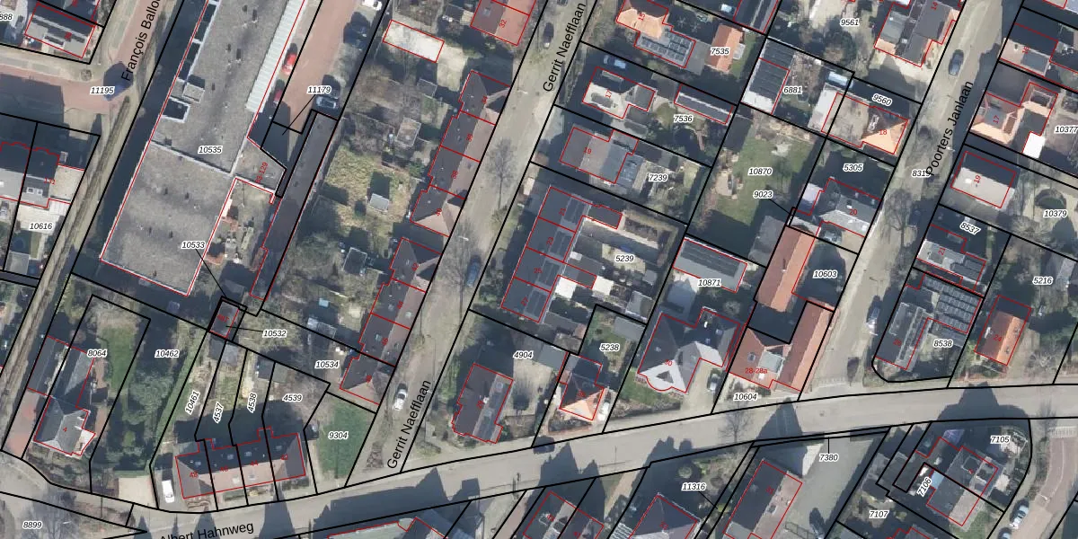 Het perceel waarop Gerrit Naefflaan 25 staat heeft een oppervlakte van 876 m². Dit is een groot perceel. De perceeloppervlakte wordt geregistreerd door het Kadaster. Gedetailleerde informatie over de maten van dit perceel kunt u vinden in het rapport Kadastrale kaart met maatvoering van Gerrit Naefflaan 25.