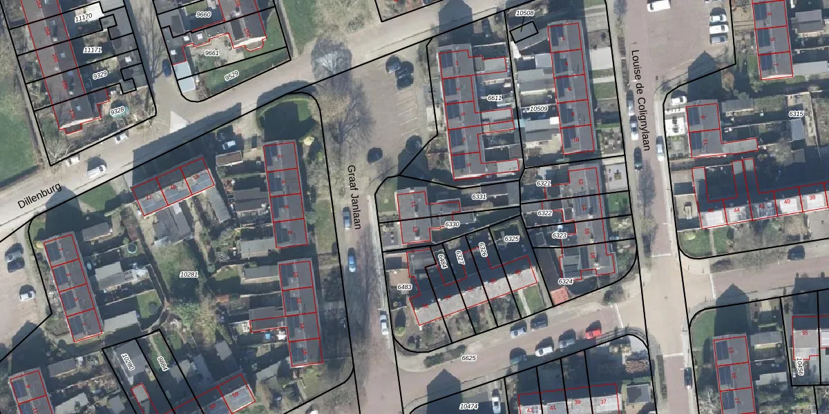 Gebruik de zoekbalk of klik op een perceel voor informatie over de adressen binnen dit perceel.