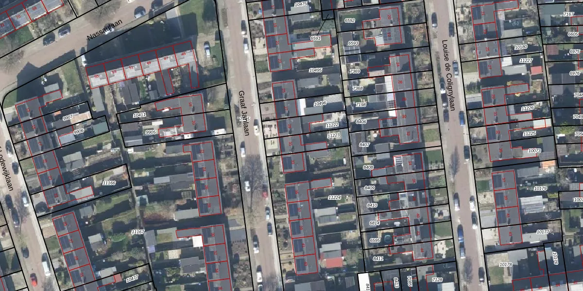 Gebruik de zoekbalk of klik op een perceel voor informatie over de adressen binnen dit perceel.
