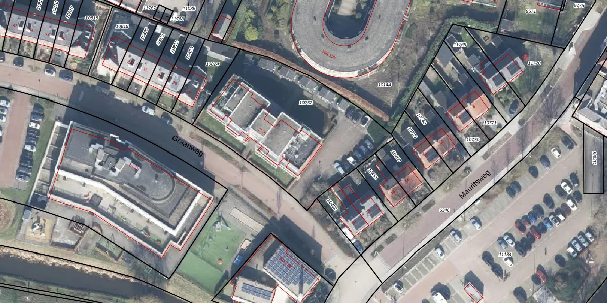 Het perceel waarop Graanweg 16 staat heeft een oppervlakte van 1745 m². Dit is een zeer groot perceel. De perceeloppervlakte wordt geregistreerd door het Kadaster. Gedetailleerde informatie over de maten van dit perceel kunt u vinden in het rapport Kadastrale kaart met maatvoering van Graanweg 16.