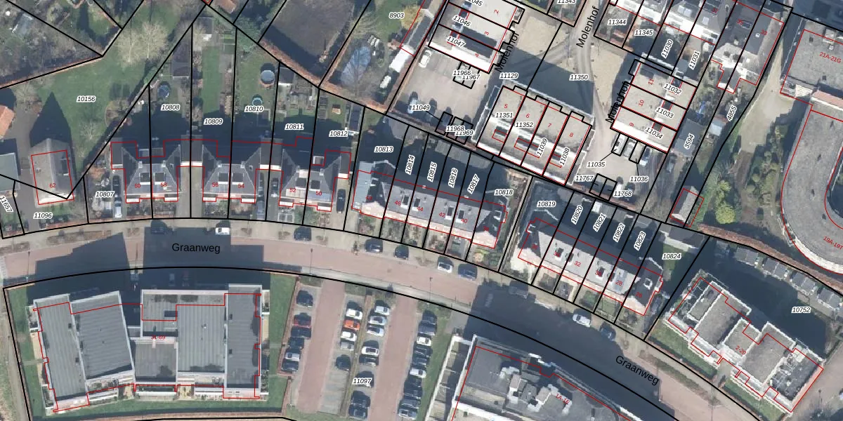 Het perceel waarop Graanweg 44 staat heeft een oppervlakte van 144 m². Dit is een middelgroot perceel. De perceeloppervlakte wordt geregistreerd door het Kadaster. Gedetailleerde informatie over de maten van dit perceel kunt u vinden in het rapport Kadastrale kaart met maatvoering van Graanweg 44.