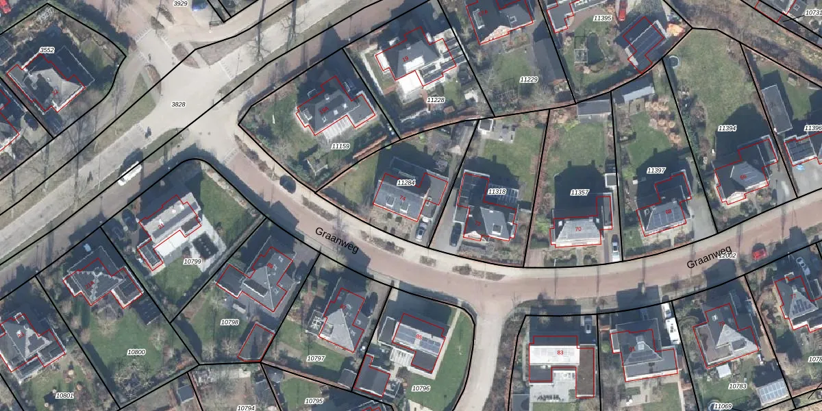 Het perceel waarop Graanweg 74 staat heeft een oppervlakte van 630 m². Dit is een groot perceel. De perceeloppervlakte wordt geregistreerd door het Kadaster. Gedetailleerde informatie over de maten van dit perceel kunt u vinden in het rapport Kadastrale kaart met maatvoering van Graanweg 74.