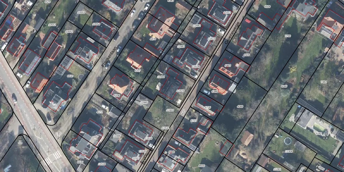 Gebruik de zoekbalk of klik op een perceel voor informatie over de adressen binnen dit perceel.