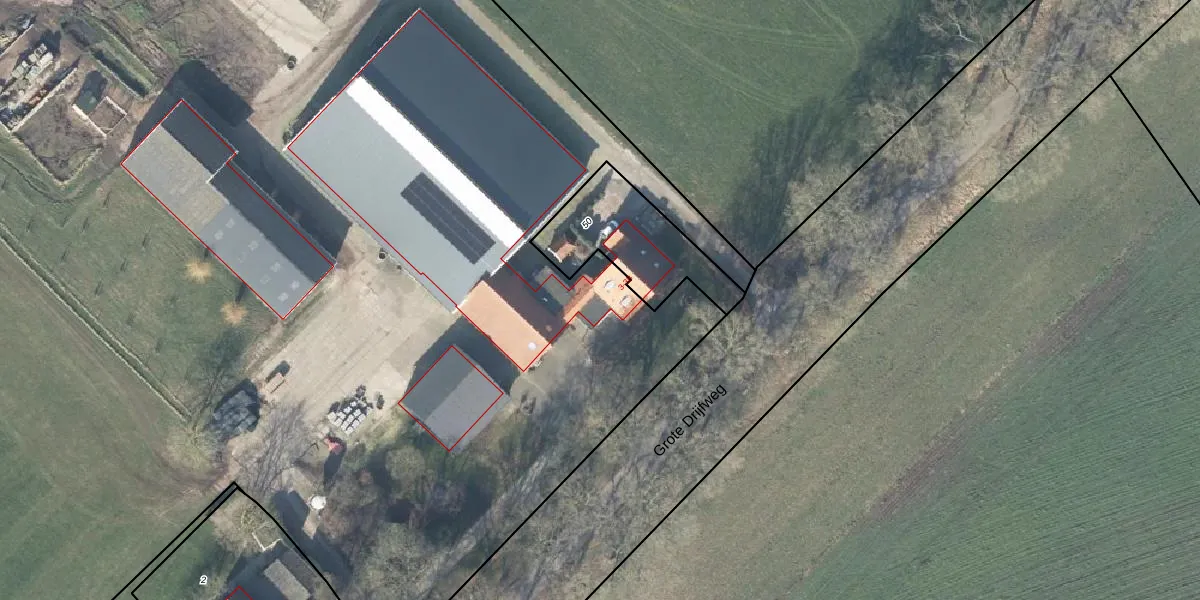 Het perceel waarop Grote Drijfweg 3 staat heeft een oppervlakte van 7,7 ha. Dit is een zeer groot perceel. De perceeloppervlakte wordt geregistreerd door het Kadaster. Gedetailleerde informatie over de maten van dit perceel kunt u vinden in het rapport Kadastrale kaart met maatvoering van Grote Drijfweg 3.