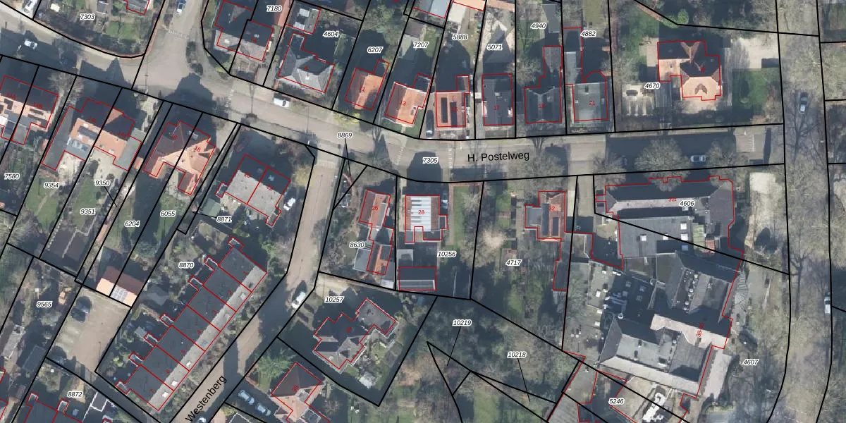 Gebruik de zoekbalk of klik op een perceel voor informatie over de adressen binnen dit perceel.