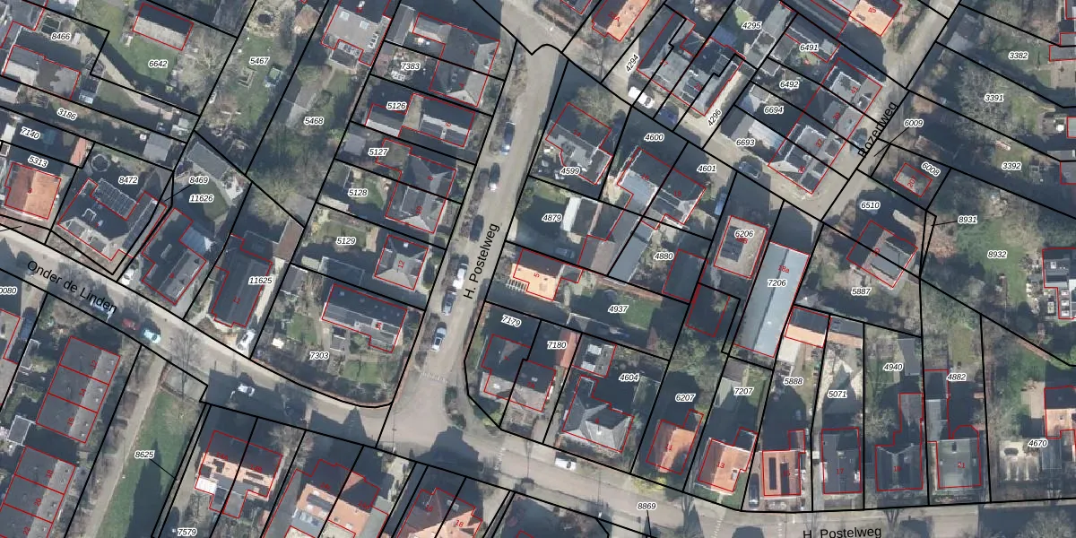 H. Postelweg 5 is gelegen op kadastraal perceel LCM00B4937. Deze kadastrale aanduiding is uniek en wordt gebruikt door het Kadaster om eigendomsrechten en andere zakelijke rechten vast te leggen. Het perceel maakt onderdeel uit van de kadastrale gemeente Lochem.