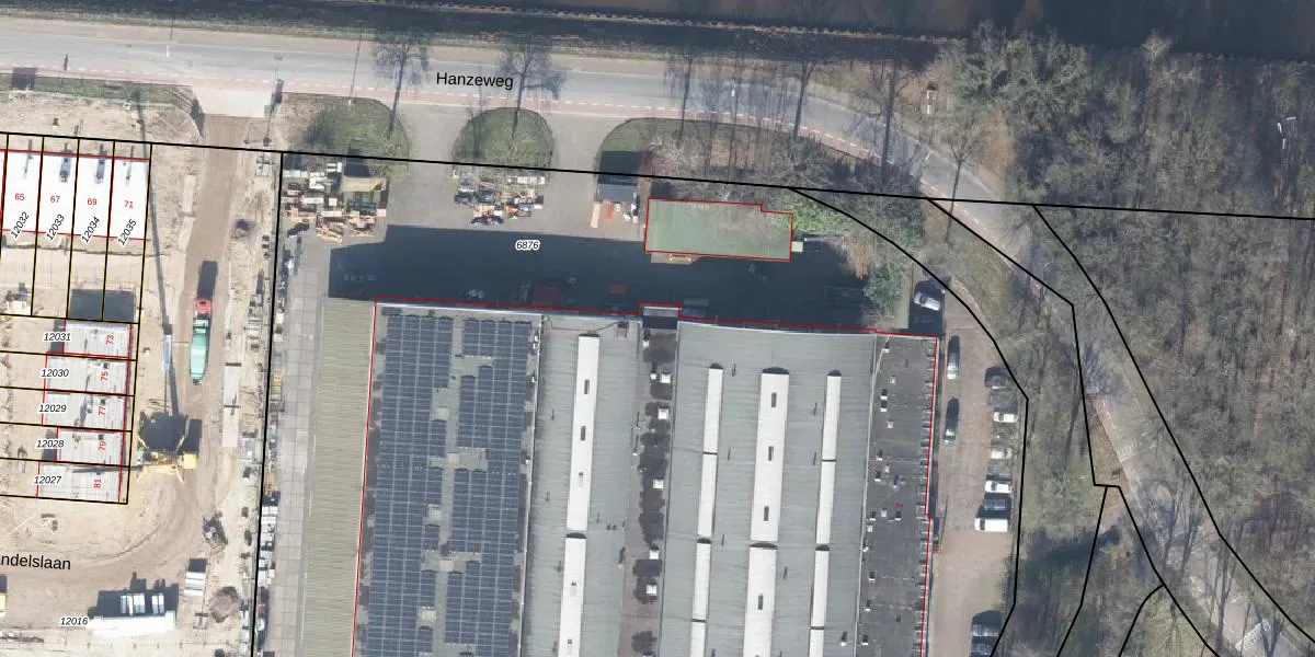Het perceel waarop Hanzeweg 2 staat heeft een oppervlakte van 1,3 ha. Dit is een zeer groot perceel. De perceeloppervlakte wordt geregistreerd door het Kadaster. Gedetailleerde informatie over de maten van dit perceel kunt u vinden in het rapport Kadastrale kaart met maatvoering van Hanzeweg 2.