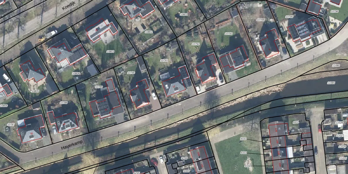 Het perceel waarop Haverkamp 12 staat heeft een oppervlakte van 734 m². Dit is een groot perceel. De perceeloppervlakte wordt geregistreerd door het Kadaster. Gedetailleerde informatie over de maten van dit perceel kunt u vinden in het rapport Kadastrale kaart met maatvoering van Haverkamp 12.
