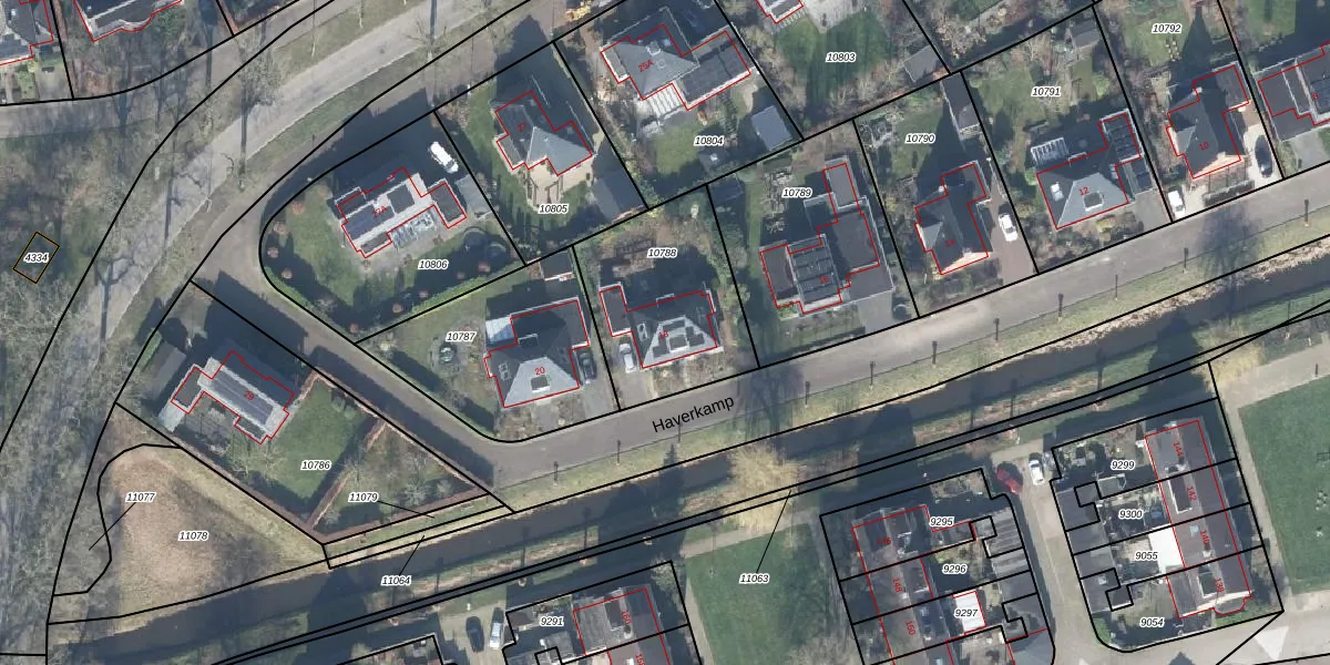 Het perceel waarop Haverkamp 18 staat heeft een oppervlakte van 602 m². Dit is een groot perceel. De perceeloppervlakte wordt geregistreerd door het Kadaster. Gedetailleerde informatie over de maten van dit perceel kunt u vinden in het rapport Kadastrale kaart met maatvoering van Haverkamp 18.
