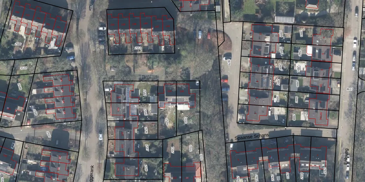 Gebruik de zoekbalk of klik op een perceel voor informatie over de adressen binnen dit perceel.