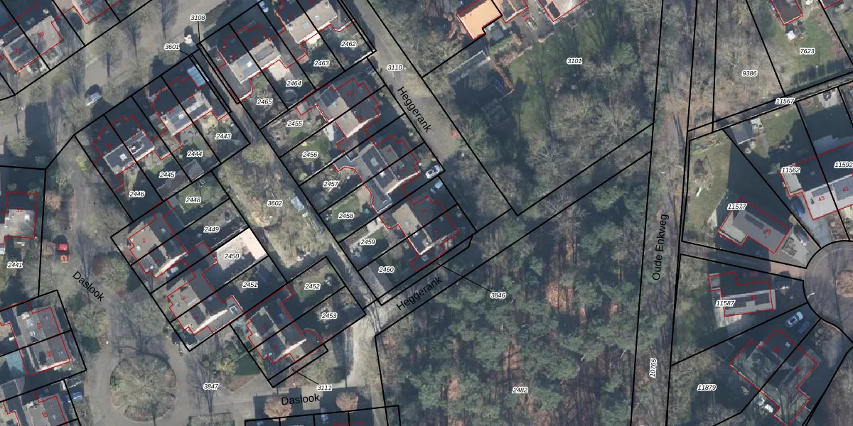 Gebruik de zoekbalk of klik op een perceel voor informatie over de adressen binnen dit perceel.