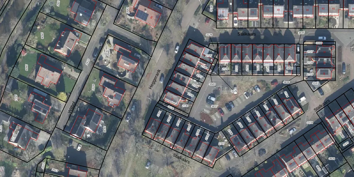 Gebruik de zoekbalk of klik op een perceel voor informatie over de adressen binnen dit perceel.