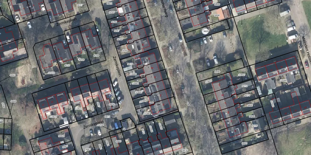 Gebruik de zoekbalk of klik op een perceel voor informatie over de adressen binnen dit perceel.