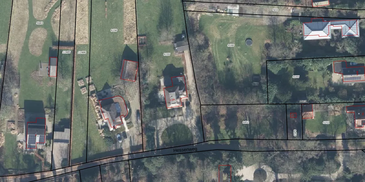 Het perceel waarop Hessenweg 2-a staat heeft een oppervlakte van 3100 m². Dit is een zeer groot perceel. De perceeloppervlakte wordt geregistreerd door het Kadaster. Gedetailleerde informatie over de maten van dit perceel kunt u vinden in het rapport Kadastrale kaart met maatvoering van Hessenweg 2-a.