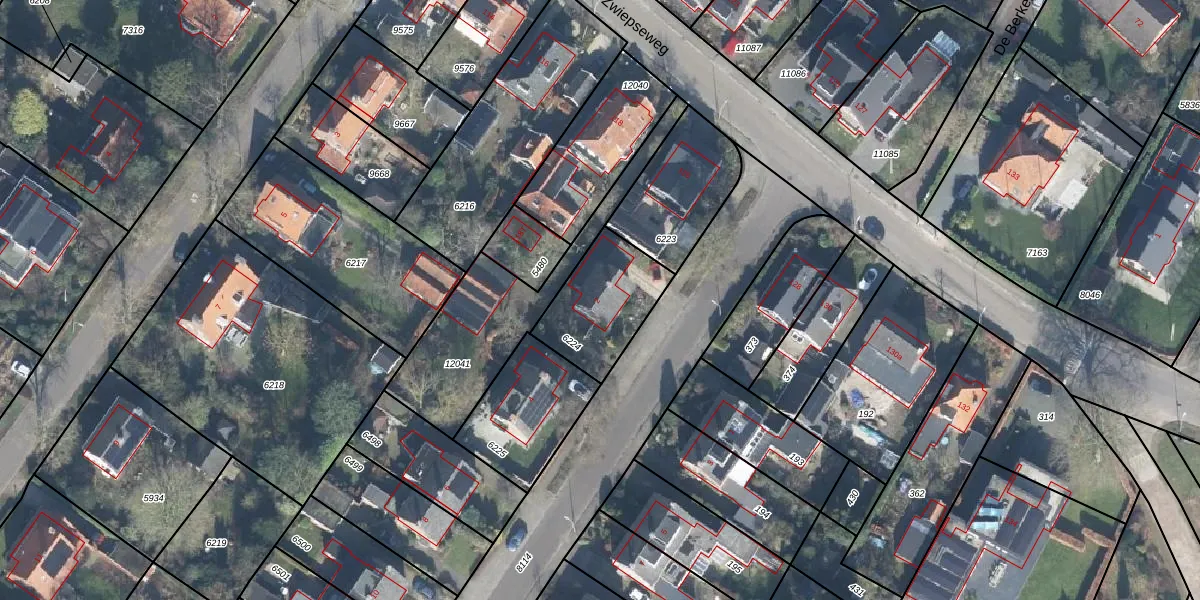 Gebruik de zoekbalk of klik op een perceel voor informatie over de adressen binnen dit perceel.