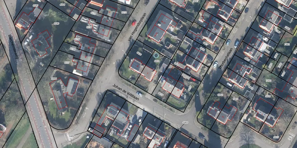 Het perceel waarop Johan de Wittlaan 1 staat heeft een oppervlakte van 351 m². Dit is een groot perceel. De perceeloppervlakte wordt geregistreerd door het Kadaster. Gedetailleerde informatie over de maten van dit perceel kunt u vinden in het rapport Kadastrale kaart met maatvoering van Johan de Wittlaan 1.