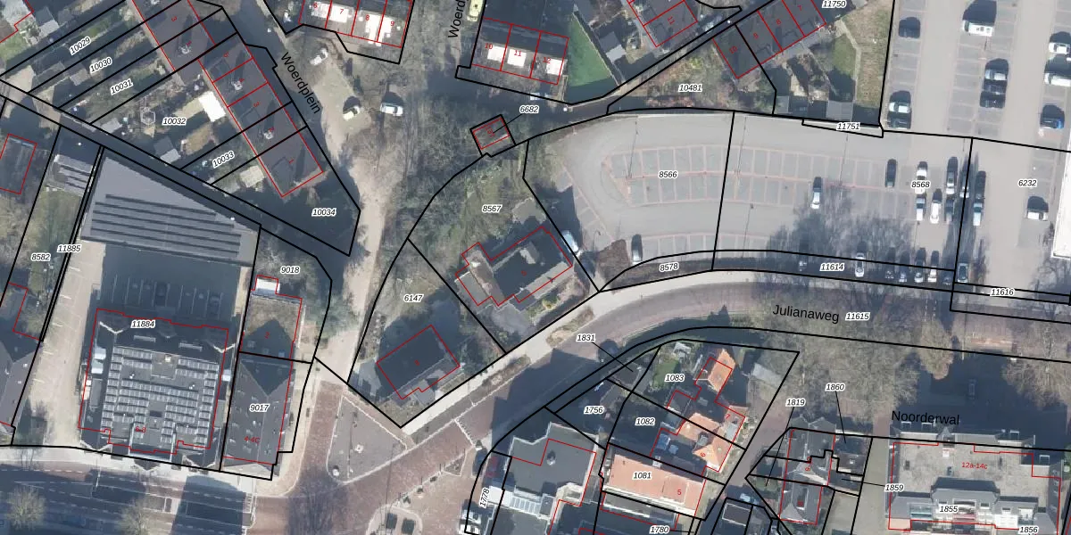 Gebruik de zoekbalk of klik op een perceel voor informatie over de adressen binnen dit perceel.