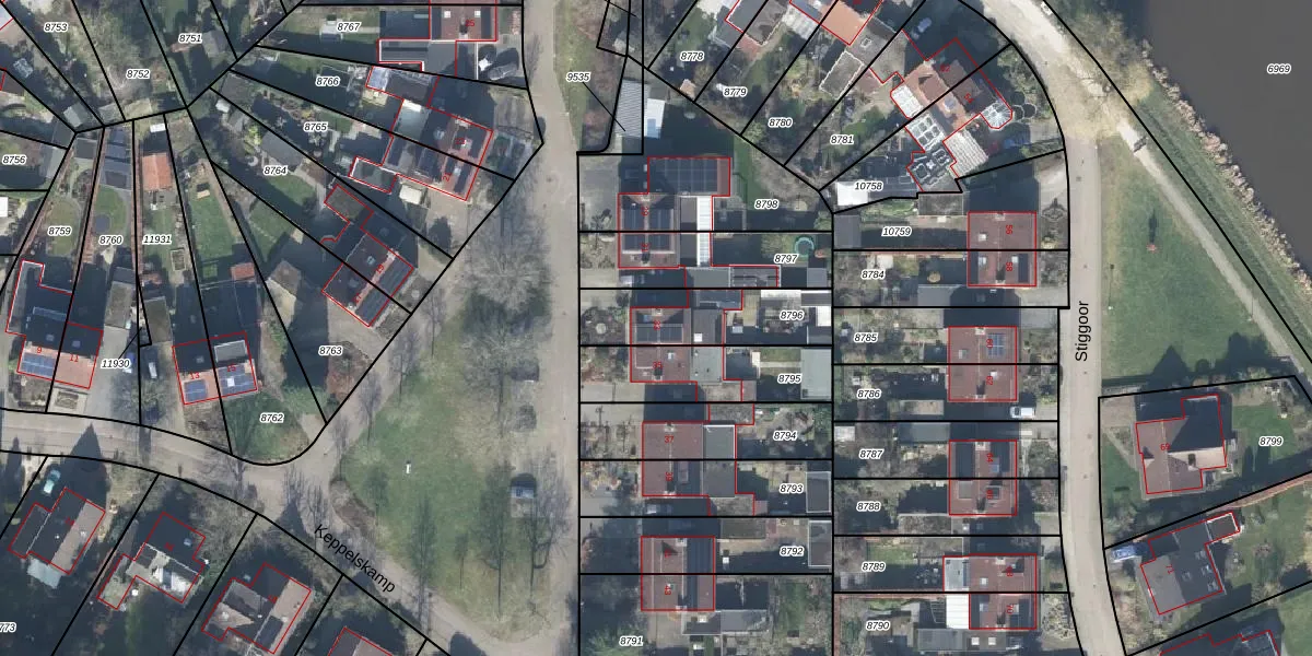 Gebruik de zoekbalk of klik op een perceel voor informatie over de adressen binnen dit perceel.
