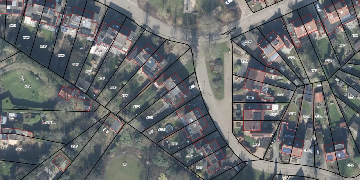 Gebruik de zoekbalk of klik op een perceel voor informatie over de adressen binnen dit perceel.