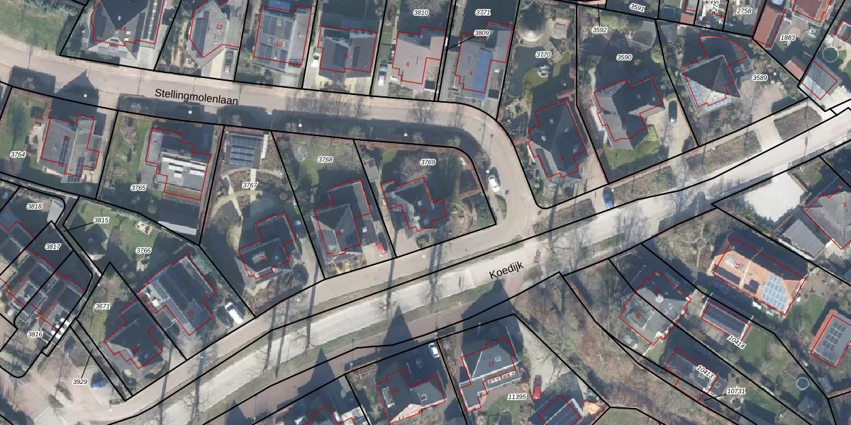 Het perceel waarop Koedijk 16 staat heeft een oppervlakte van 594 m². Dit is een groot perceel. De perceeloppervlakte wordt geregistreerd door het Kadaster. Gedetailleerde informatie over de maten van dit perceel kunt u vinden in het rapport Kadastrale kaart met maatvoering van Koedijk 16.