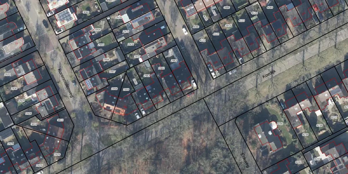 Gebruik de zoekbalk of klik op een perceel voor informatie over de adressen binnen dit perceel.