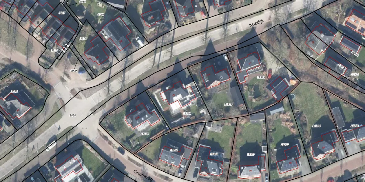 Het perceel waarop Koedijk 19 staat heeft een oppervlakte van 709 m². Dit is een groot perceel. De perceeloppervlakte wordt geregistreerd door het Kadaster. Gedetailleerde informatie over de maten van dit perceel kunt u vinden in het rapport Kadastrale kaart met maatvoering van Koedijk 19.