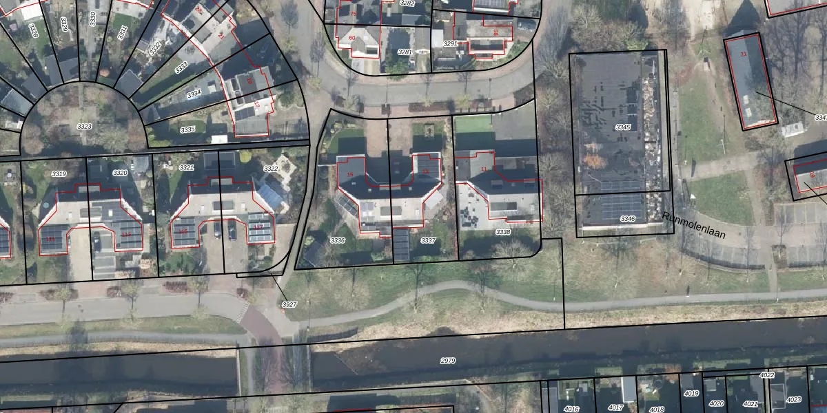 Gebruik de zoekbalk of klik op een perceel voor informatie over de adressen binnen dit perceel.