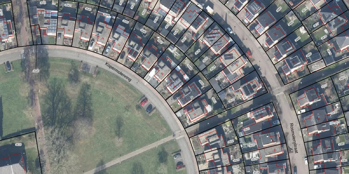 Gebruik de zoekbalk of klik op een perceel voor informatie over de adressen binnen dit perceel.
