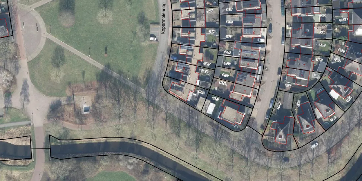 Gebruik de zoekbalk of klik op een perceel voor informatie over de adressen binnen dit perceel.