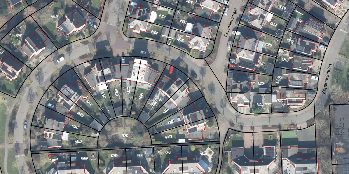 Gebruik de zoekbalk of klik op een perceel voor informatie over de adressen binnen dit perceel.
