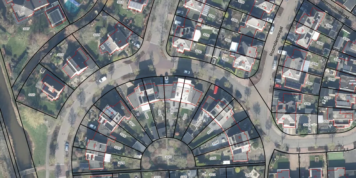Gebruik de zoekbalk of klik op een perceel voor informatie over de adressen binnen dit perceel.