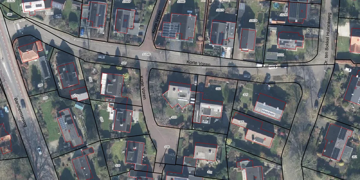 Korte Voren 5 is gelegen op kadastraal perceel LCM00G333. Deze kadastrale aanduiding is uniek en wordt gebruikt door het Kadaster om eigendomsrechten en andere zakelijke rechten vast te leggen. Het perceel maakt onderdeel uit van de kadastrale gemeente Lochem.