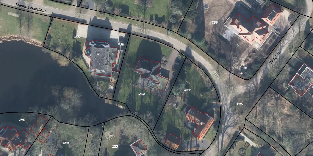 Het perceel waarop Marinus Naefflaan 9 staat heeft een oppervlakte van 1630 m². Dit is een zeer groot perceel. De perceeloppervlakte wordt geregistreerd door het Kadaster. Gedetailleerde informatie over de maten van dit perceel kunt u vinden in het rapport Kadastrale kaart met maatvoering van Marinus Naefflaan 9.
