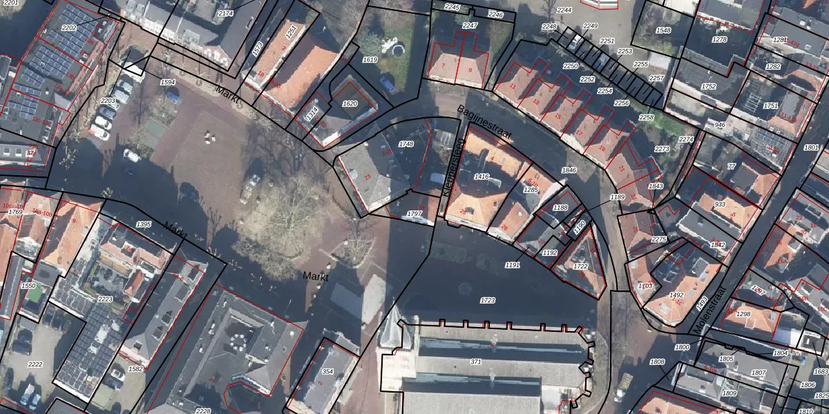 Het perceel waarop Markt 24 staat heeft een oppervlakte van 80 m². Dit is een klein perceel. De perceeloppervlakte wordt geregistreerd door het Kadaster. Gedetailleerde informatie over de maten van dit perceel kunt u vinden in het rapport Kadastrale kaart met maatvoering van Markt 24.