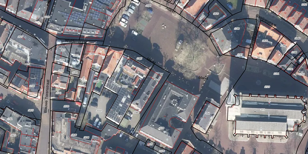 Het perceel waarop Markt 5-c staat heeft een oppervlakte van 533 m². Dit is een groot perceel. De perceeloppervlakte wordt geregistreerd door het Kadaster. Gedetailleerde informatie over de maten van dit perceel kunt u vinden in het rapport Kadastrale kaart met maatvoering van Markt 5-c.