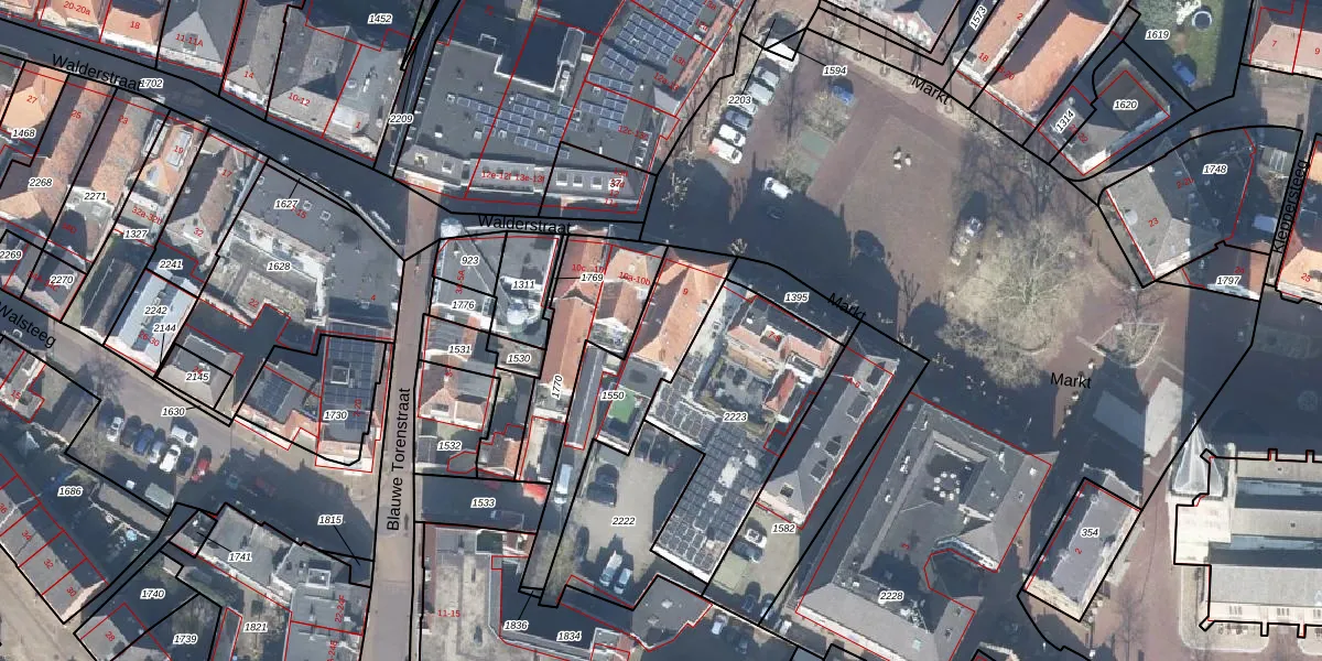 Het perceel waarop Markt 9 staat heeft een oppervlakte van 419 m². Dit is een groot perceel. De perceeloppervlakte wordt geregistreerd door het Kadaster. Gedetailleerde informatie over de maten van dit perceel kunt u vinden in het rapport Kadastrale kaart met maatvoering van Markt 9.