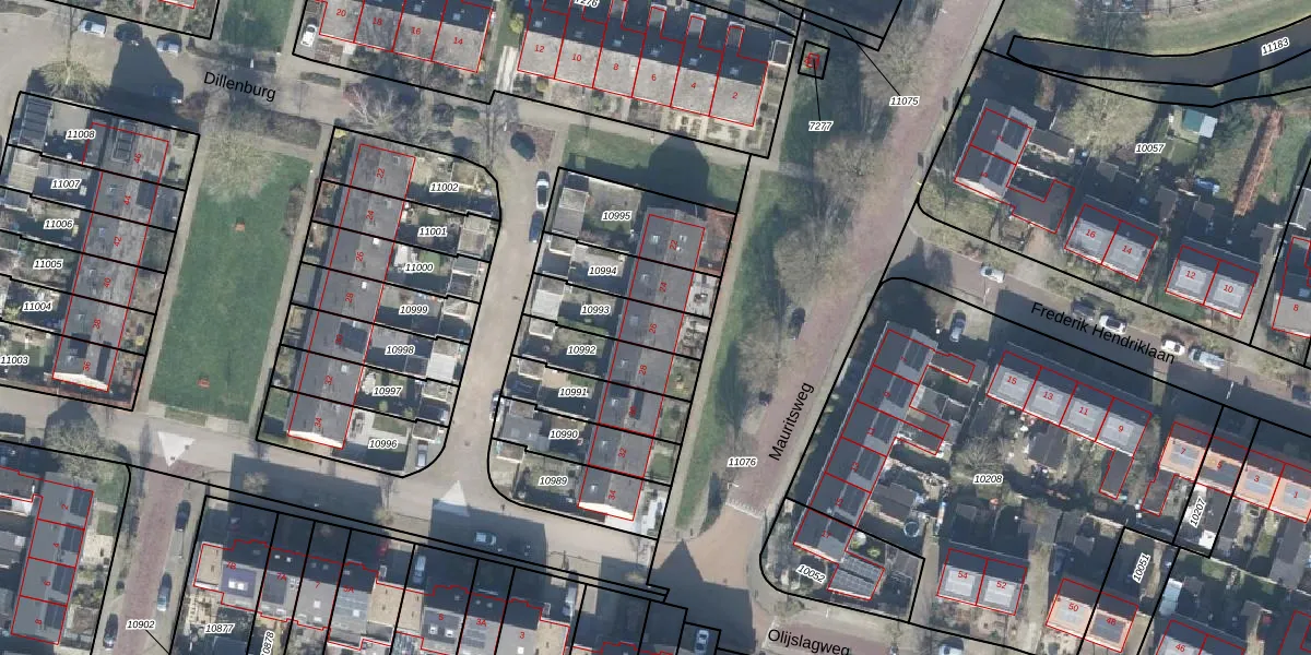 Gebruik de zoekbalk of klik op een perceel voor informatie over de adressen binnen dit perceel.