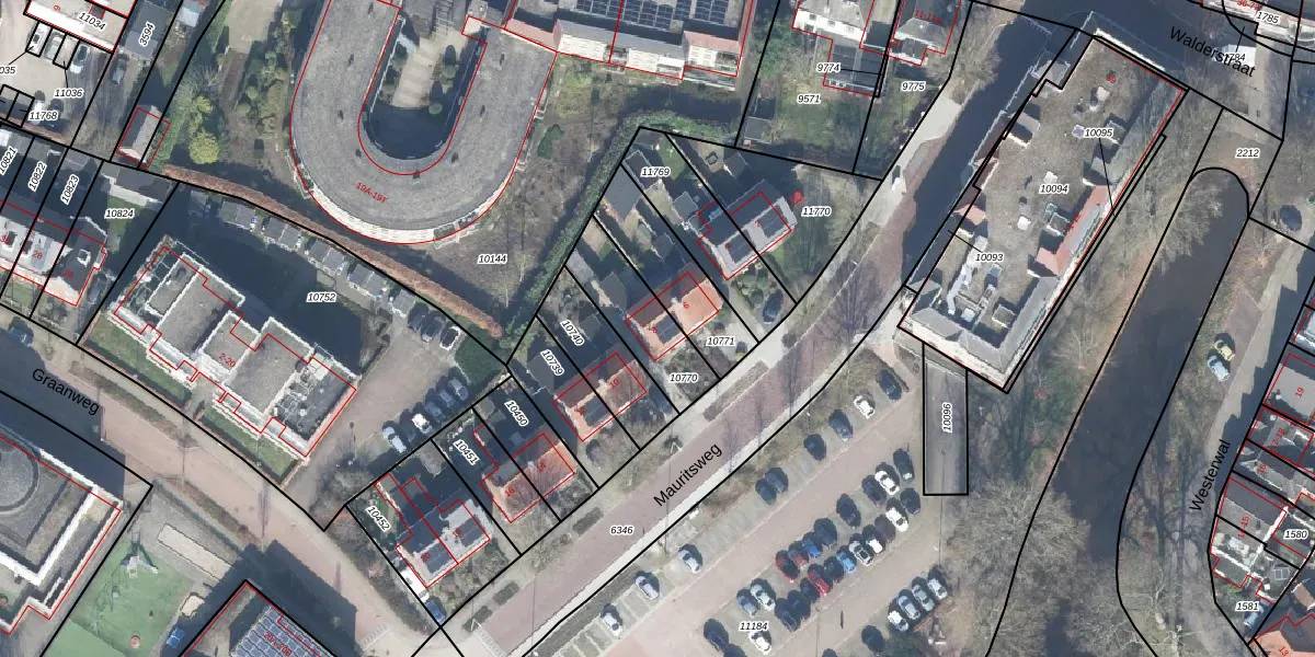Gebruik de zoekbalk of klik op een perceel voor informatie over de adressen binnen dit perceel.