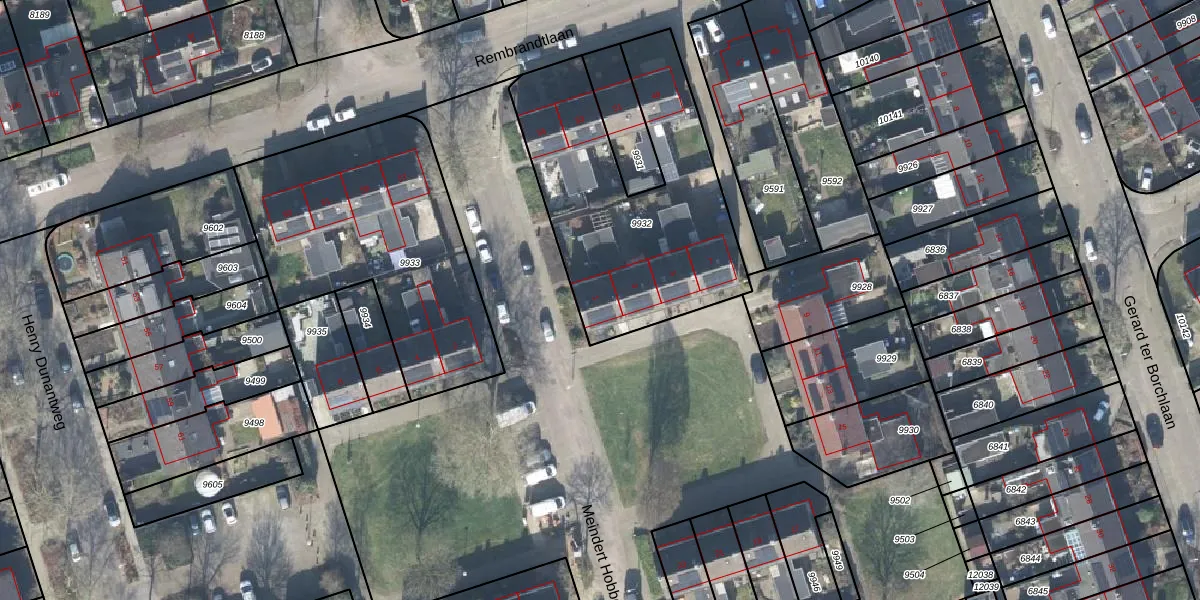 Meindert Hobbemalaan 1 is gelegen op kadastraal perceel LCM00B9932. Deze kadastrale aanduiding is uniek en wordt gebruikt door het Kadaster om eigendomsrechten en andere zakelijke rechten vast te leggen. Het perceel maakt onderdeel uit van de kadastrale gemeente Lochem.