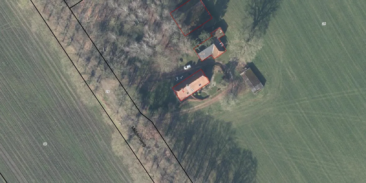Middenweg 1 is gelegen op kadastraal perceel LCM00R24. Deze kadastrale aanduiding is uniek en wordt gebruikt door het Kadaster om eigendomsrechten en andere zakelijke rechten vast te leggen. Het perceel maakt onderdeel uit van de kadastrale gemeente Lochem.