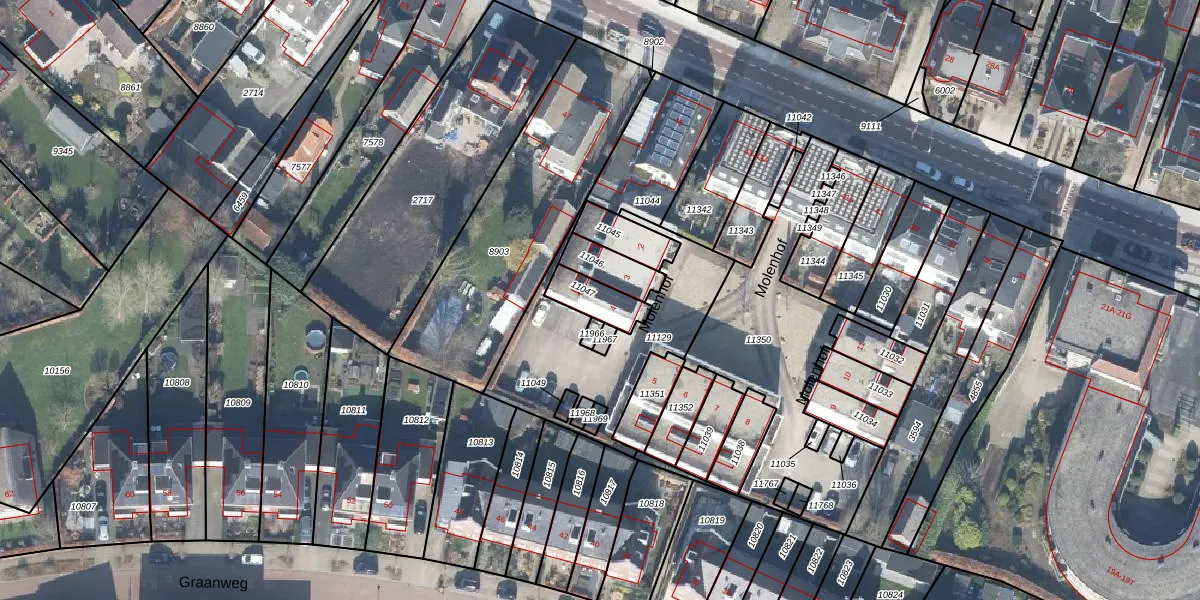 Het perceel waarop Molenhof 4 staat heeft een oppervlakte van 97 m². Dit is een klein perceel. De perceeloppervlakte wordt geregistreerd door het Kadaster. Gedetailleerde informatie over de maten van dit perceel kunt u vinden in het rapport Kadastrale kaart met maatvoering van Molenhof 4.