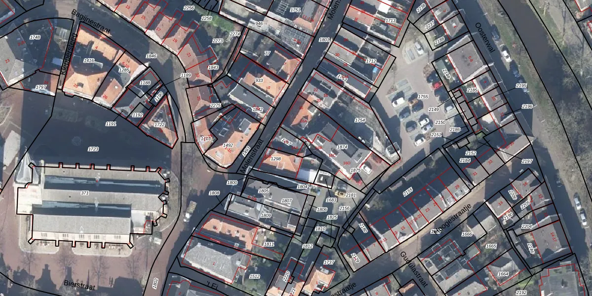 Het perceel waarop Molenstraat 14-a staat heeft een oppervlakte van 80 m². Dit is een klein perceel. De perceeloppervlakte wordt geregistreerd door het Kadaster. Gedetailleerde informatie over de maten van dit perceel kunt u vinden in het rapport Kadastrale kaart met maatvoering van Molenstraat 14-a.