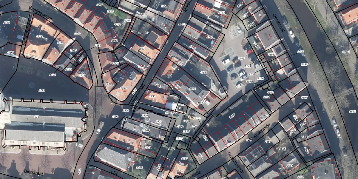 Het perceel waarop Molenstraat 16-b staat heeft een oppervlakte van 493 m². Dit is een groot perceel. De perceeloppervlakte wordt geregistreerd door het Kadaster. Gedetailleerde informatie over de maten van dit perceel kunt u vinden in het rapport Kadastrale kaart met maatvoering van Molenstraat 16-b.