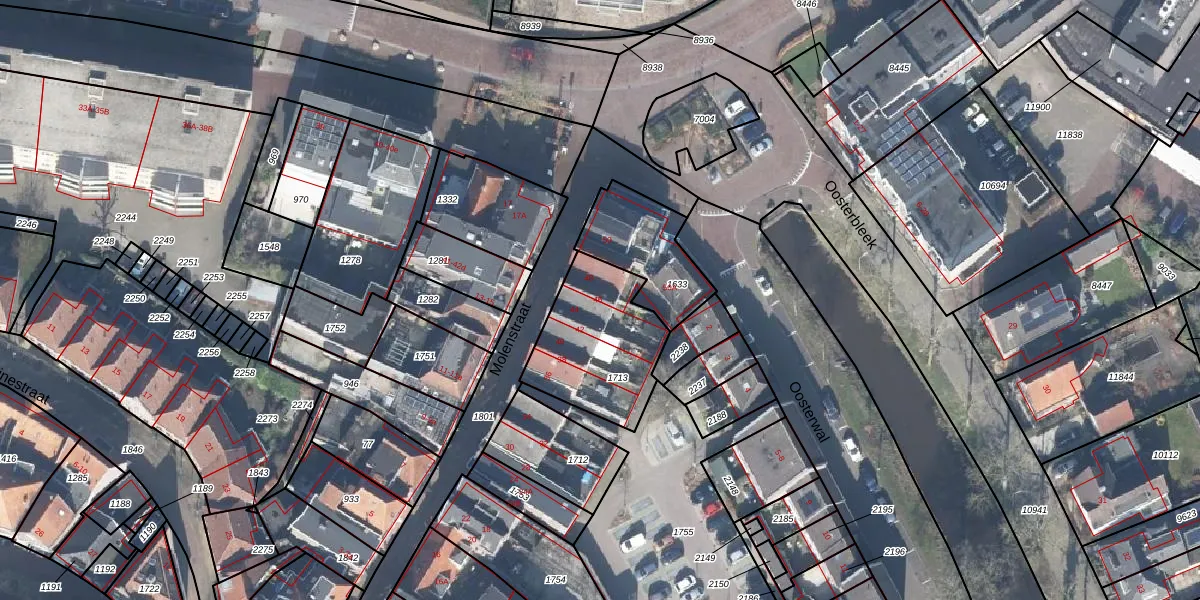 Het perceel waarop Molenstraat 46 staat heeft een oppervlakte van 448 m². Dit is een groot perceel. De perceeloppervlakte wordt geregistreerd door het Kadaster. Gedetailleerde informatie over de maten van dit perceel kunt u vinden in het rapport Kadastrale kaart met maatvoering van Molenstraat 46.
