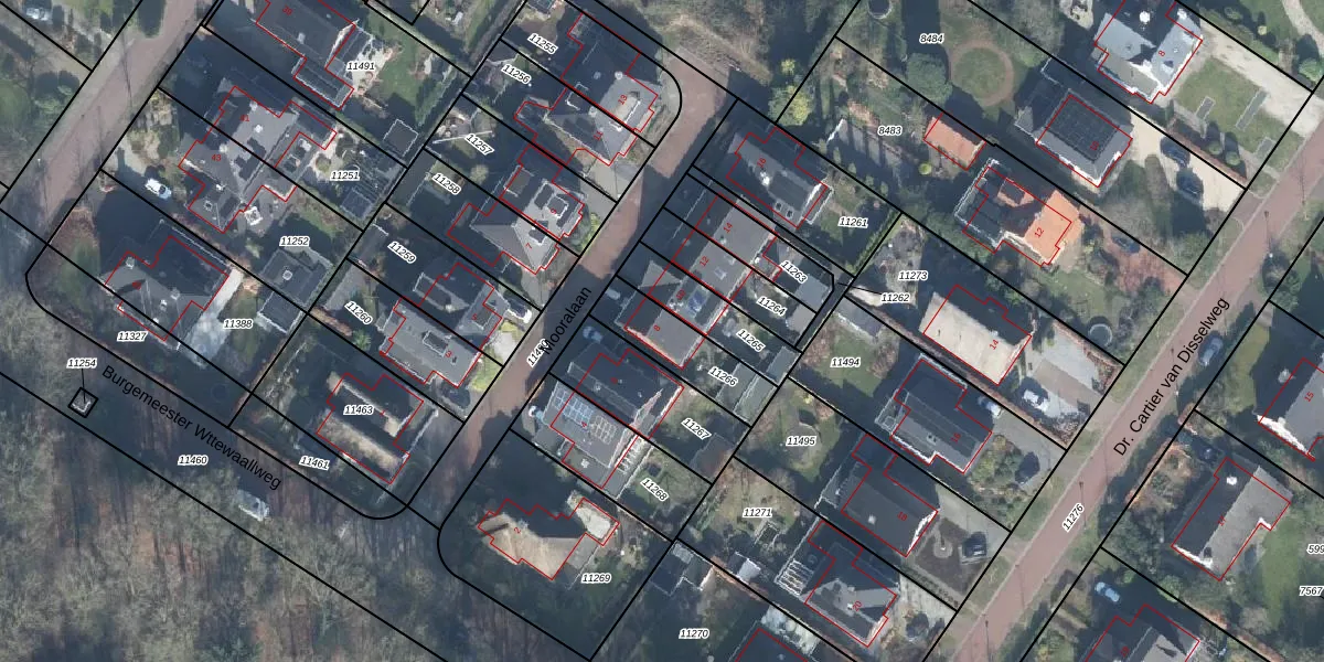 Gebruik de zoekbalk of klik op een perceel voor informatie over de adressen binnen dit perceel.