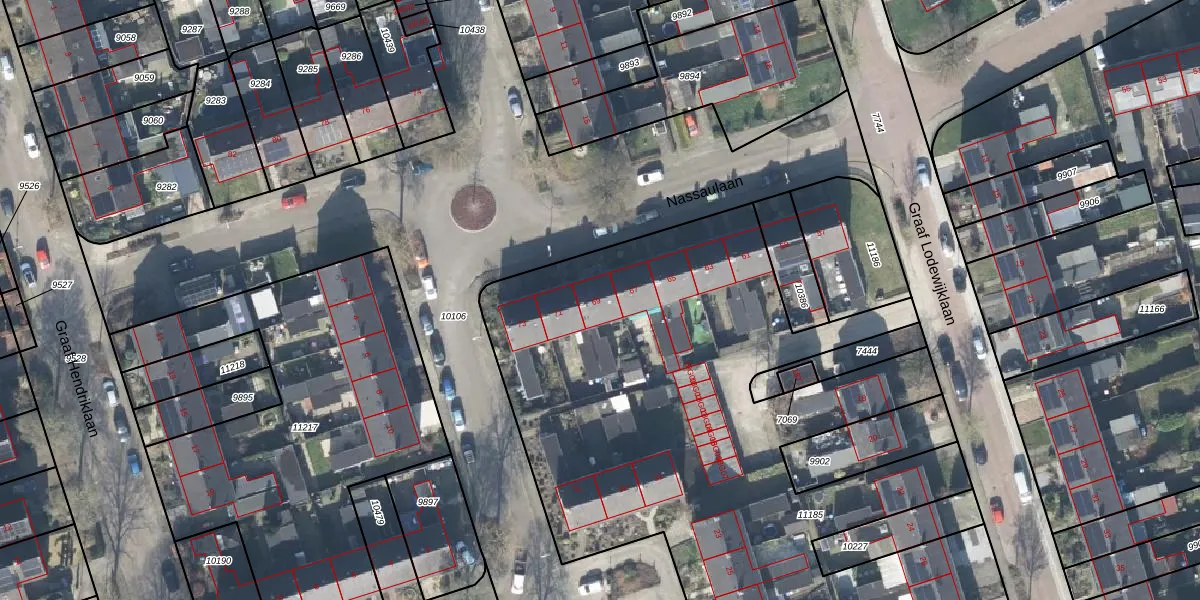Het perceel waarop Nassaulaan 69 staat heeft een oppervlakte van 6123 m². Dit is een zeer groot perceel. De perceeloppervlakte wordt geregistreerd door het Kadaster. Gedetailleerde informatie over de maten van dit perceel kunt u vinden in het rapport Kadastrale kaart met maatvoering van Nassaulaan 69.