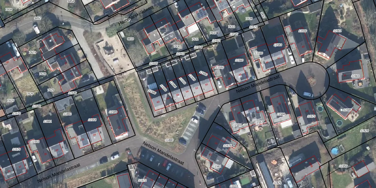 Gebruik de zoekbalk of klik op een perceel voor informatie over de adressen binnen dit perceel.