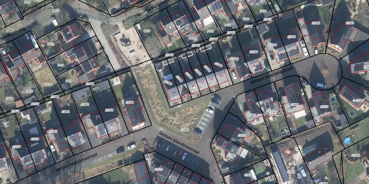 Gebruik de zoekbalk of klik op een perceel voor informatie over de adressen binnen dit perceel.